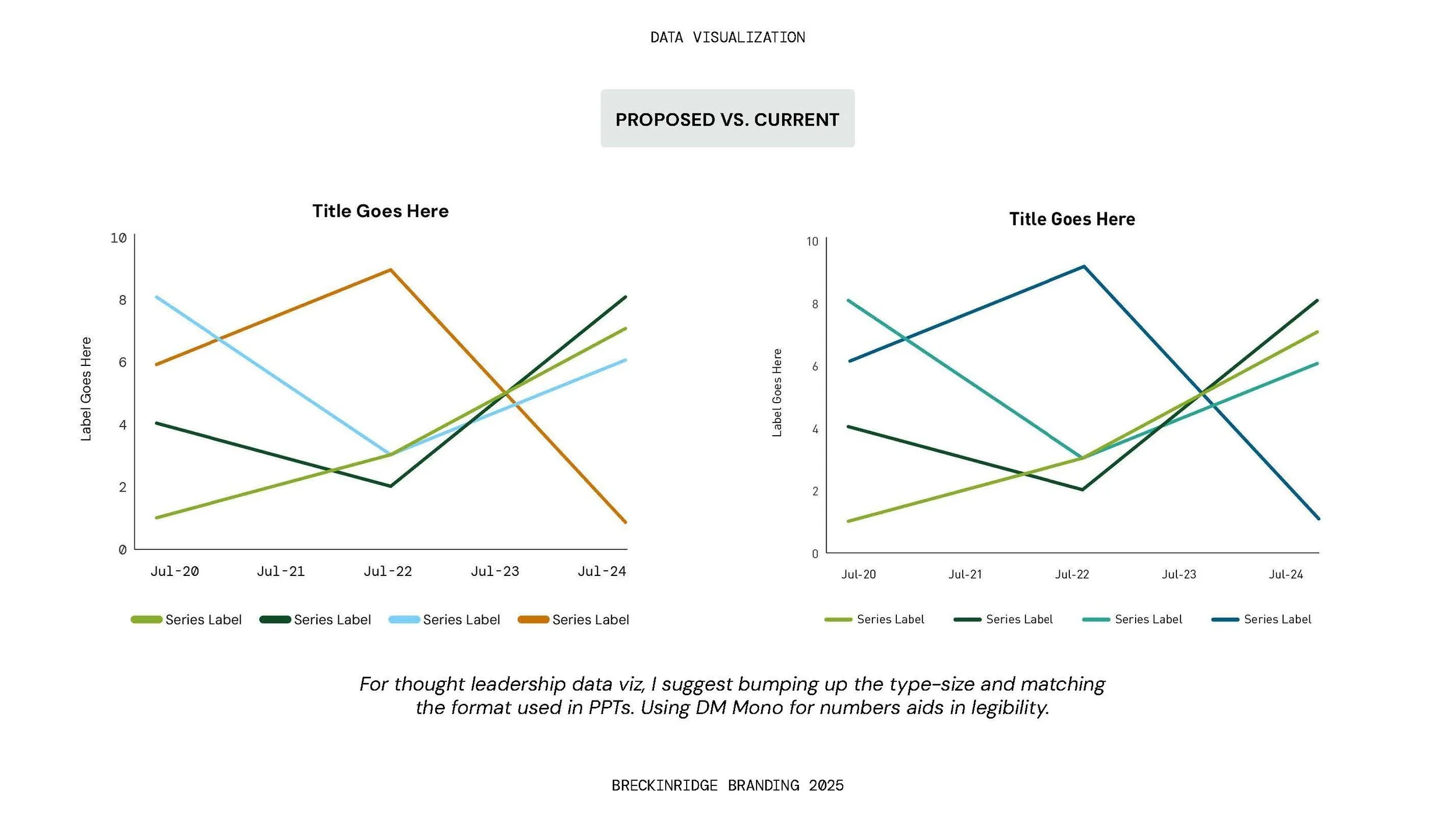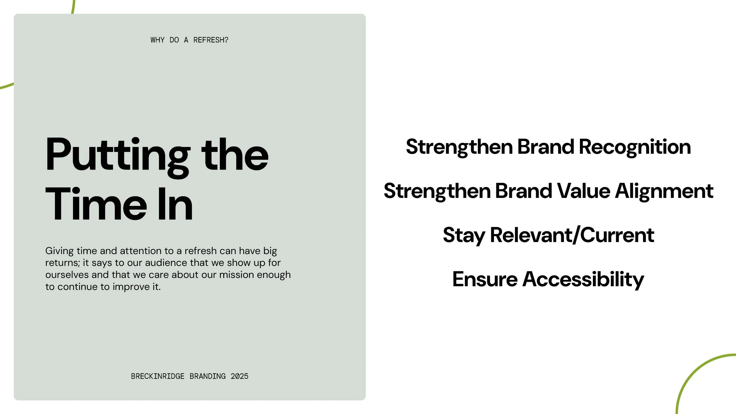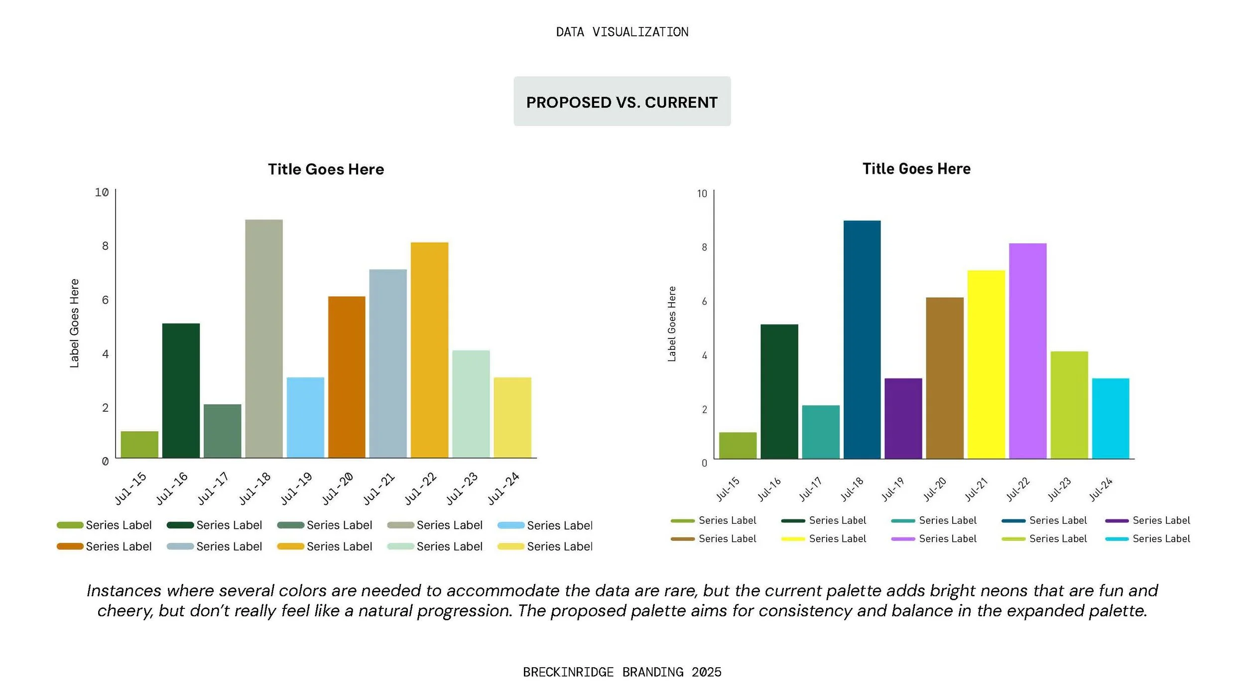 In the first half of the year I begun working on a proposal for a branding refresh for Breckinridge. I saw an opportunity to modernize some of the branding elements, since no work had been done on this since 2016 and something like this had not been done in-house before. Collateral was starting to feel dated, and there were pain points around accessibility with colors and typography.