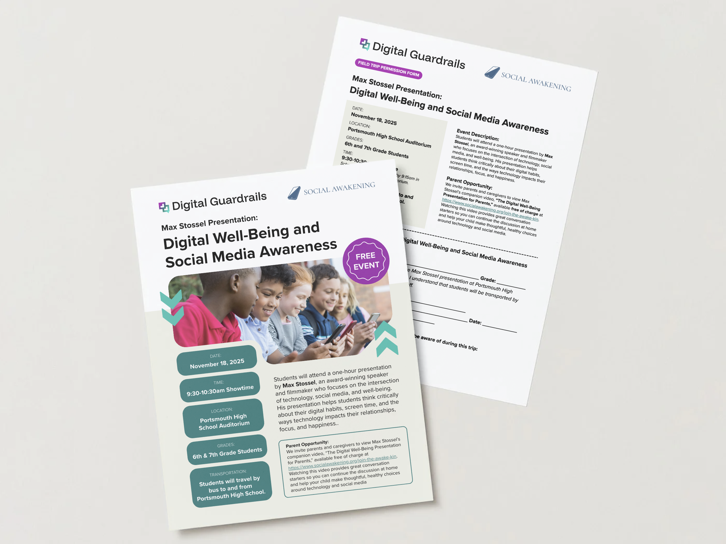 Digital Guardrails is an educational program designed for families of rising middle school students across New Hampshire’s Seacoast region. Its mission is to prepare parents and children for the transition into smartphone and social media use; empowering them to build healthy digital habits before the first phone is in hand. The curriculum consists of virtual lessons distributed by teachers to students to work on at their own pace with their parent’s guidance, and in-person forums from early-education experts.