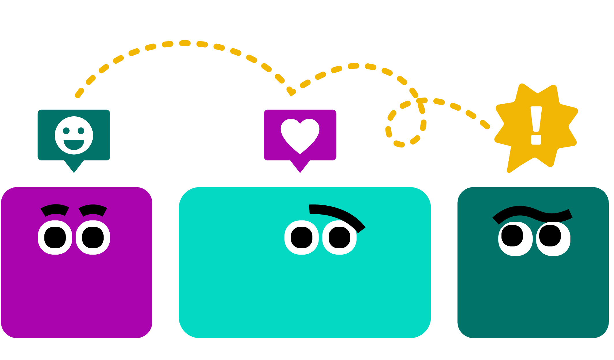 In their negative space, directional arrows subtly point toward one another representing guidance, empathy, and the idea of meeting halfway. These arrow-forms can also be read as hearts on their sides, suggesting care and emotional safety within digital communication.
